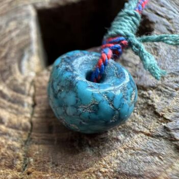 $128.00An aged Tibetan-style high-grade Turquoise pendant with deep blue tones, porcelain-like luster, and ...