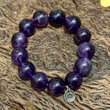 Quickview Amethyst Lotus Bracelet 13mm – Natural Amethyst Beads with 925 Sterling Silver Lotus Charm, Handmade Meditation Jewelry for Calm & Balance