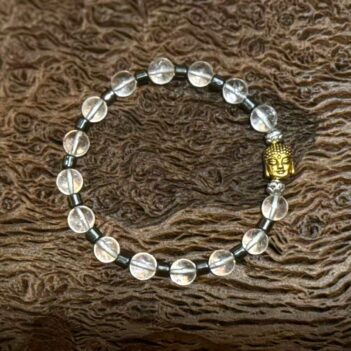 Quickview Buddha Head Bracelet with Clear Quartz & Black Agate 0.8mm | Feng Shui Energy Beads for Protection, Clarity & Balance