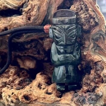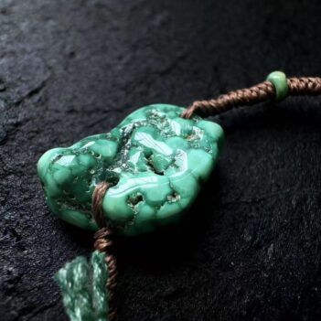 Hand-carved turquoise pendant featuring an ancient dragon pattern that symbolizes protection, wisdom...