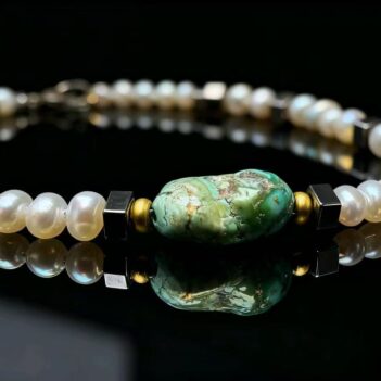 A refined bracelet crafted from natural jadeized turquoise, paired with ocean relic pearl beads and ...