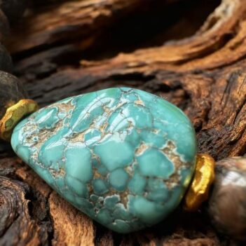 A rare natural high-grade turquoise pendant where deep blue, green, and black fuse into one. Its bol...